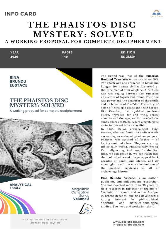 The period was that of the Sumerian Hundred Years War (circa 2500–2350 BC). The epoch was one drenched in blood and hunger, for human civilization stood at the precipice of ruin or glory. A ruthless war was raging between the Sumerian city-states of Lagash and Umma. The prize was power and the conquest of the fertile and rich lands of Gu-Edin. The story of some of those epic deeds and their heroes, like Kug-Bau, the mythical goddess-queen, travelled far and wide, across distance and the ages, until it reached the sunny shores of Crete, where a mysterious artist impressed it on a clay disk. In 1908, Italian archaeologist Luigi Pernier, who had found the artifact while overseeing an archaeological campaign at Phaistos, was accused of forgery — of having conjured a hoax. They were wrong. Historically wrong. Philologically wrong. Culturally wrong. And now, for the first time, we can prove it. We can reach into the dark shadows of the past, peel back decades of doubt and silence, and by moonlight… read the truth behind one of the greatest mysteries in all of archaeology history.